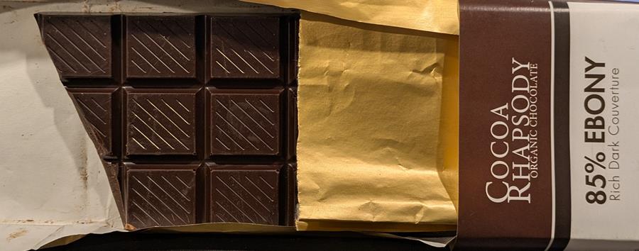 With this knowledge I offer a row or two of Cocoa Rhapsody 85% Ebony to anyone who comes to our house for more than ten minutes.