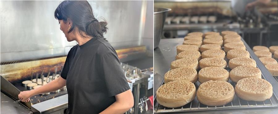 Apologising unnecessarily for the mess caused by the broken dishwasher, it’s just another obstacle in Tegan’s day provisioning a small team with absolutley everything they need to turn out and serve hundreds of perfect crumpets.