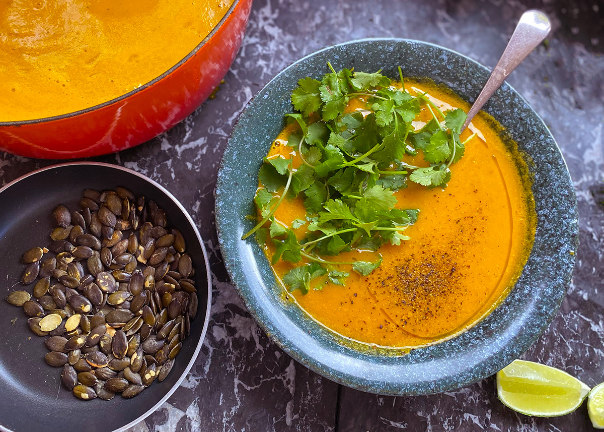 Turn the heat off, allow to cool for 15 mins or so, remove lemongrass pieces and blend until very smooth – don’t blend very hot soup as it can blow the top off and make a mess
