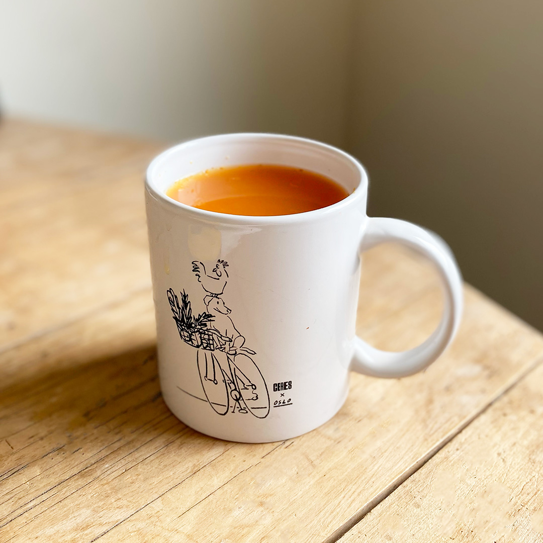 On days where you’re feeling a little flat or like you’re coming down with something, boil the kettle, chuck an ice cube of this and a spoon of honey in a mug and add boiling water. Stir to combine everything well, sip and enjoy.
