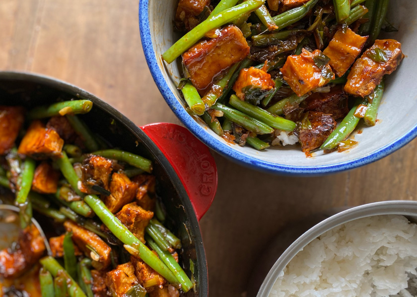 In this recipe, stalwart green beans are served alongside crunchy tofu in a spicy, tangy sauce. With only four fresh ingredients and some must-have pantry staples, this recipe makes for a quick-sticks, ultra-satisfying, vegan weeknight meal.