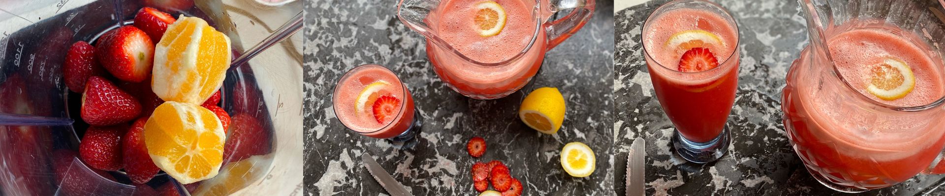 Toss the lemon chunks, strawberries, sugar (if using), and a splash of fizzy water into your blender and blend until smooth. Top it off with more fizzy water to taste.